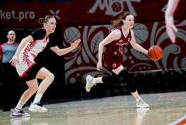 Наша команда начала матч с рывка 7-2, после чего игра шла на качелях: хозяйки то подбирались вплотную, то вновь откатывались назад, но ответный спринт 6-0 под занавес отрезка позволил «львицам» сравнять счёт — 18:18. Во второй десятиминутке МБА-МГУСиТ-2 здорово сыграл в защите, позволив соперницам набрать лишь 11 очков. Благодаря этому в раздевалку красно-белые отправились при «+6» — 35:29. Отдельно стоит сказать про Анну Минаеву — за первую половину она практически сделала дабл-дабл, 8 очков и 12 подборов.
