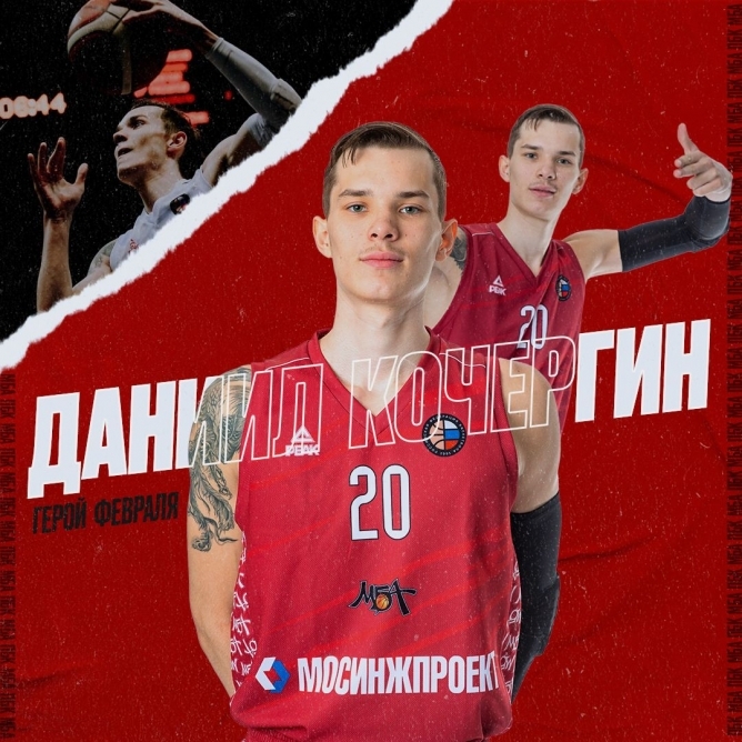 Даниил Кочергин принял участие в трёх февральских матчах, неизменно выходя в стартовой пятёрке. Самой результативной для него стала домашняя игра против «Уфимца», в которой наш форвард набрал 13 очков (6/7 со средней дистанции). Но самой яркой получилась встреча против ЦСКА-2, где Кочергин отметился роскошным дабл-даблом (12 очков + 14 подборов) и несколькими фирменными блок-шотами.